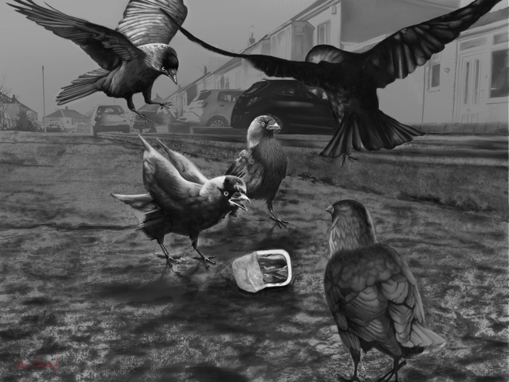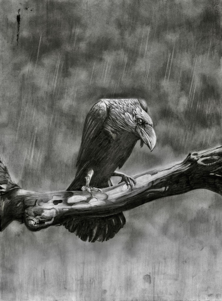I went through a period of drawing nothing but crows for about two years. I really love them and enjoyed this drawing period immensely. The problem I had was that I just couldn’t get enough high quality images in the poses I wanted. I tried taking photos myself but I don’t have the kit to do that. Anyway, I bought an iPad and the rest is history!