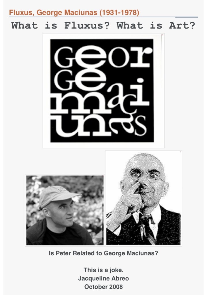 This led me to think about an art movement I used to teach my school kids about – the Fluxus movement from the 1960s. Yoko Ono was an early pioneer. Essentially, it was a development of the DaDa movement from the 1920s. It was absurd, nonsensical, silly and fun. It tried to be an antithesis of the expensive, elitist abstract art that dominated the 1950s. I loved this quote by founder George Maciunas: