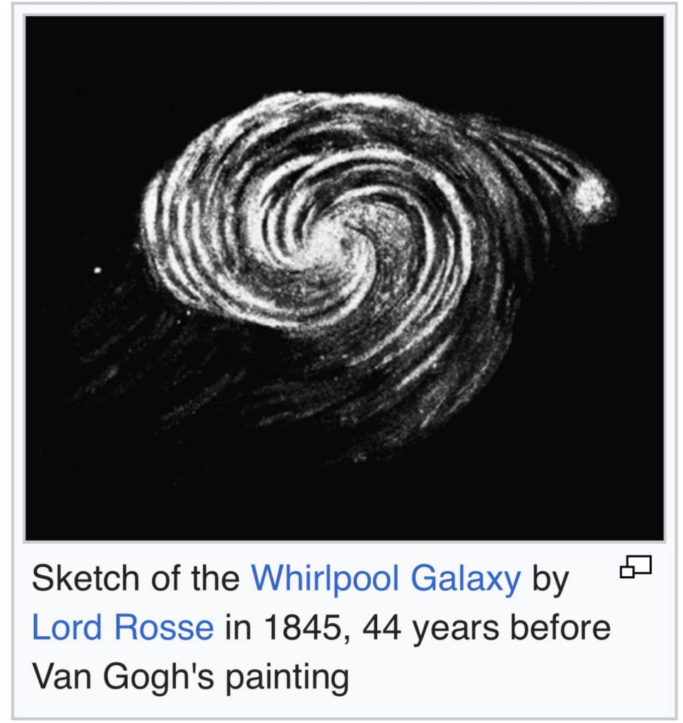 Despite these clear religious, spiritual intentions, he stated that Starry Night wasn’t a romantic or religious painting, but rather a reflection of his awe and inspiration for the beautiful night skies in Saint Remy and the surrounding landscape of Cyprus trees and the Alpille mountains. He composed the painting at night through the bars of his room in the asylum. While not completely from memory, he painted it during the day in the studio the asylum had provided for him. The scene is an amalgam of compositional elements. The village is based on a sketch of Saint-Rémy, the moon is stylised, the cypresses were objects of fascination to him and potent symbols of death. The brightest star is actually Venus, which he commented was prominent in the morning sky. It’s also likely that he was aware of popular illustrated publications of the night sky at that time, which depicted swirling spiral nebulae and whirlpool galaxies. These may have influenced him to paint those beautiful swirls in the sky.